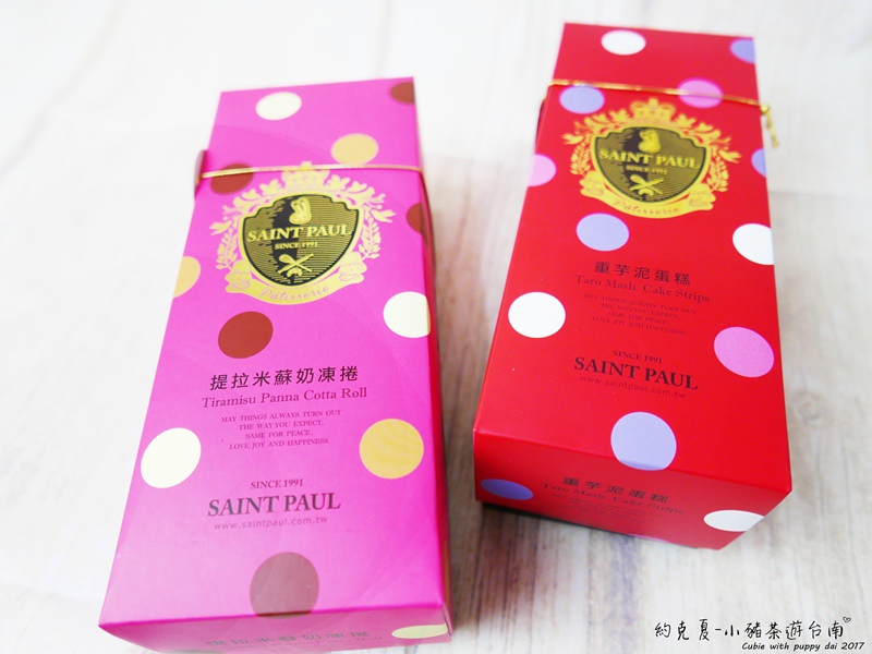 豬爸豬媽試吃蛋糕選擇的是【重芋泥蛋糕】和【提拉米蘇奶凍捲】,精緻的外盒包裝看起來十分地華麗討喜啊!